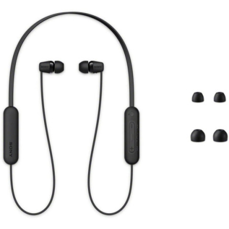 Sluchátka WI-C100 se snadno ovládají a jsou vybavena tlačítkem pro přehrávání a pozastavení hudby, změnu skladby a přizpůsobení hlasitosti a také pro příjem hovorů. Pro vaše pohodlí byl nově navržen design tlačítek, který má výraznější tvar, což usnadňuje jejich stisknutí.
