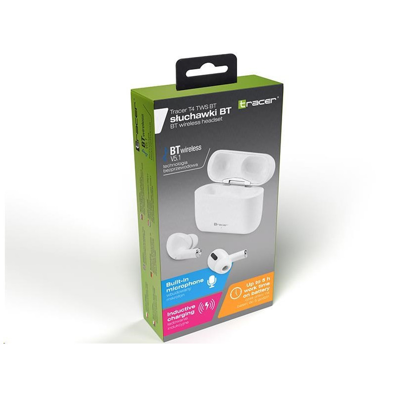 Convenient charging - The Tracer headphones have a built-in 500 mAh battery that provides up to 5 hours of uninterrupted music or phone calls. When the battery is down, you can easily recharge it using the charging case – you do not need a cable or a charger, it’s all wireless. In addition to the charging function, the case also protects the headphones against damage or loss.
