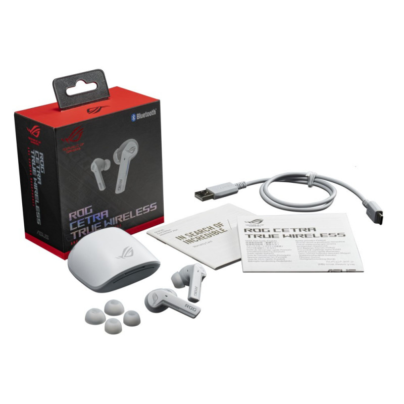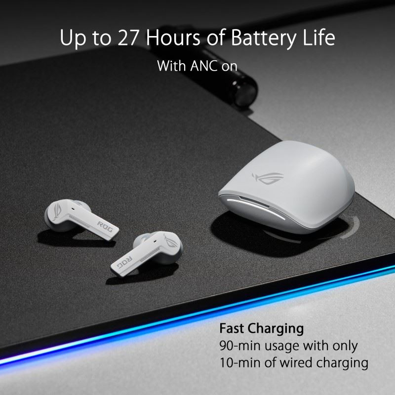 ROG Cetra True Wireless gaming headphones with low-latency wireless connection, ANC, up to 27-hour battery with wireless-charging case, IPX4 water resistance and support for EQ/virtual 7.1 via Armoury Crate