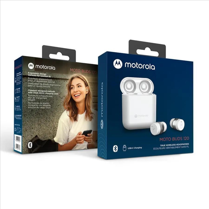 Poslouchejte svou oblíbenou hudbu kdekoliv. Sluchátka MOTO BUDS 120 nabízí vysoký výkon a kvalitu zvuku.
