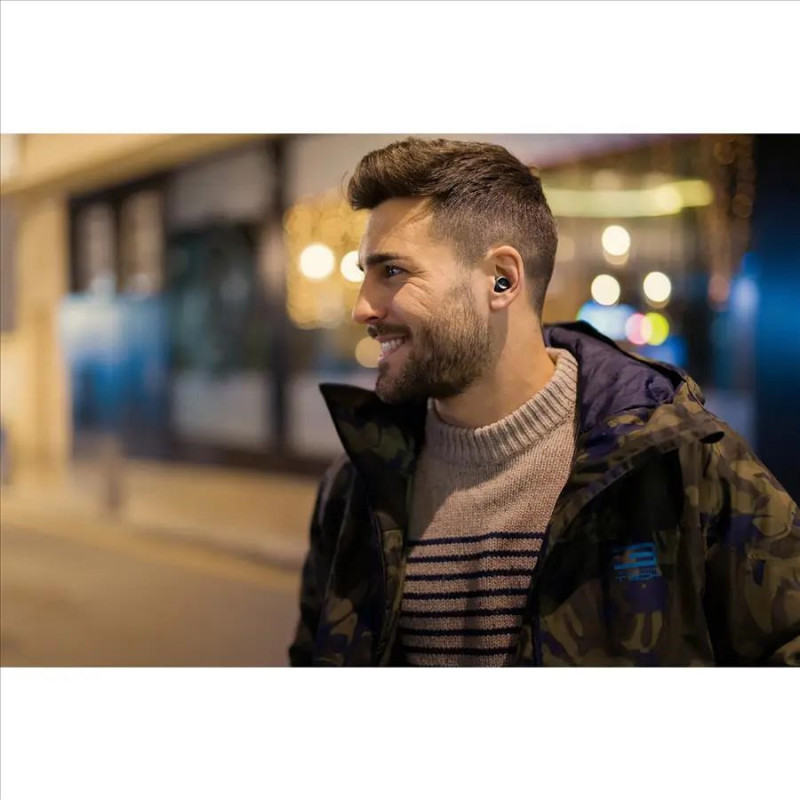- zcela bezdrátová sluchátka do uší (in-ear) pro poslech hudby a telefonování přes Bluetooth