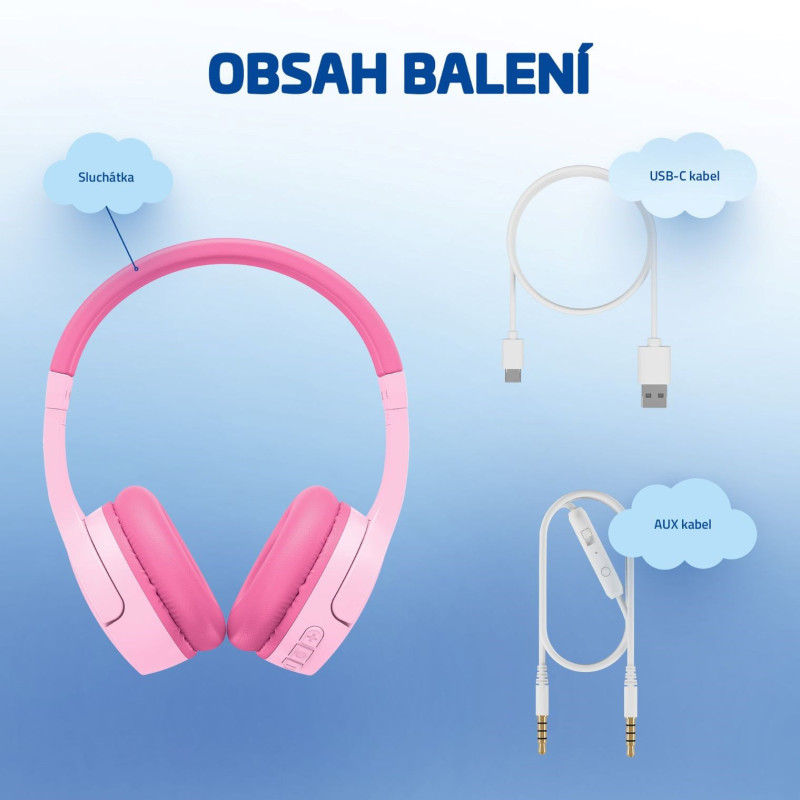 Zabavit děti na cestách už není problém, když si nasadí svoje růžová nebo modrá sluchátka, můžou sledovat pohádku nebo jiná videa opravdu dlouho. Při připojení přes Bluetooth 5.3 s efektivním battery managementem vydrží baterie až 35 hodin při 50% hlasitosti nebo jde použít kabel. A dobíjení? Stačí 10 minut a jsou z toho 2 hodiny poslechu. Bluetooth má zesílený dosah a okamžitě se spáruje se zařízením. Když si dítě volá třeba s prarodiči, kvalitní mikrofon je základ a ten sluchátka mají. Velmi snadno se ovládají, při prvním seznámení pomůže i video tutoriál. Za zmínku stojí taky balení, ve kterém je minimum plastů, protože ekologie se nesmí podceňovat.