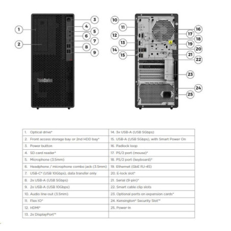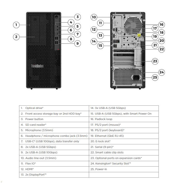 * 2x USB-A (USB 5Gb/s/USB 3.2 Gen 1)
