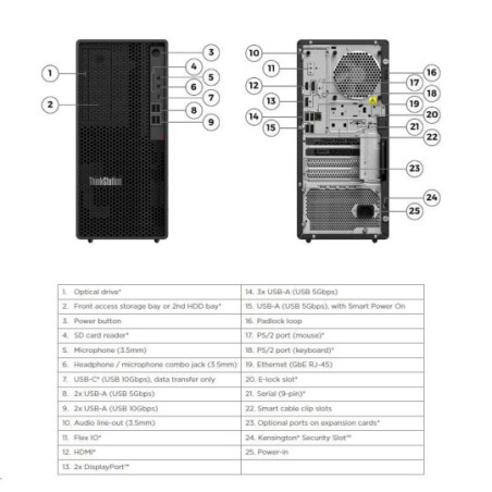 * 2x USB-A (USB 5Gb/s/USB 3.2 Gen 1)