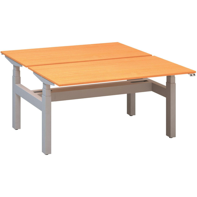 Kancelářský psací stůl ALFA UP výškově stavitelný, duotable, 1400 mm, buk bavaria / šedá