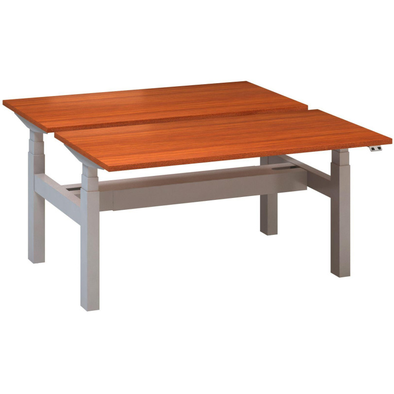 Kancelářský psací stůl ALFA UP výškově stavitelný, duotable, 1400 mm, třešeň / šedá