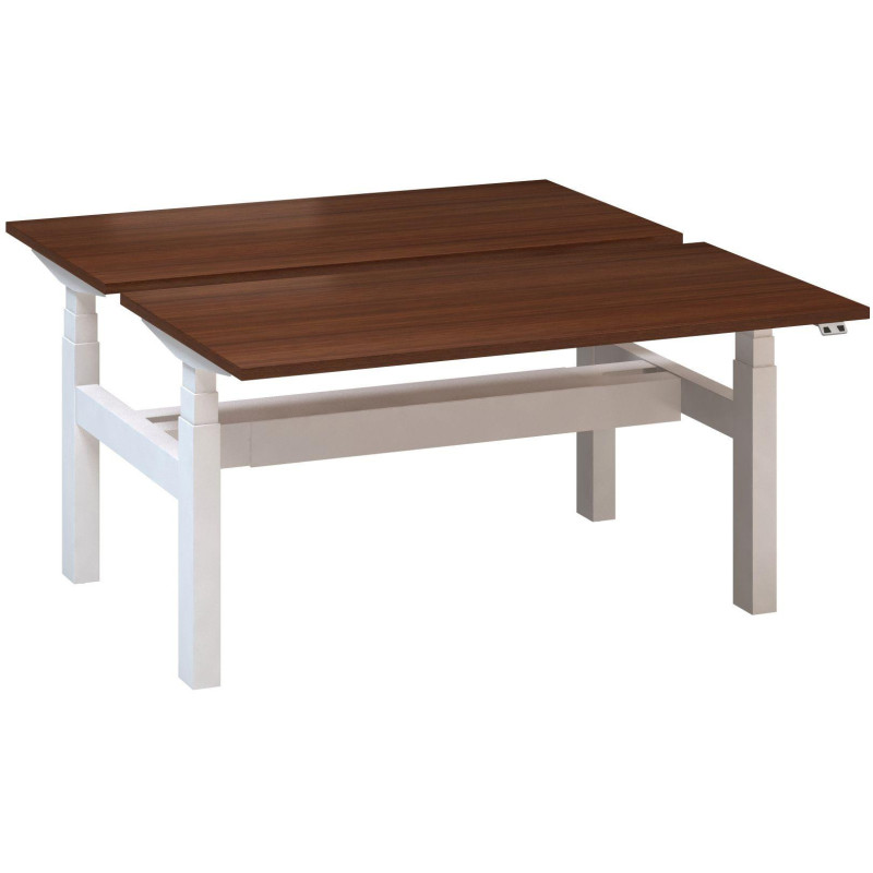 Kancelářský psací stůl ALFA UP výškově stavitelný, duotable, 1400 mm, ořech / bílá