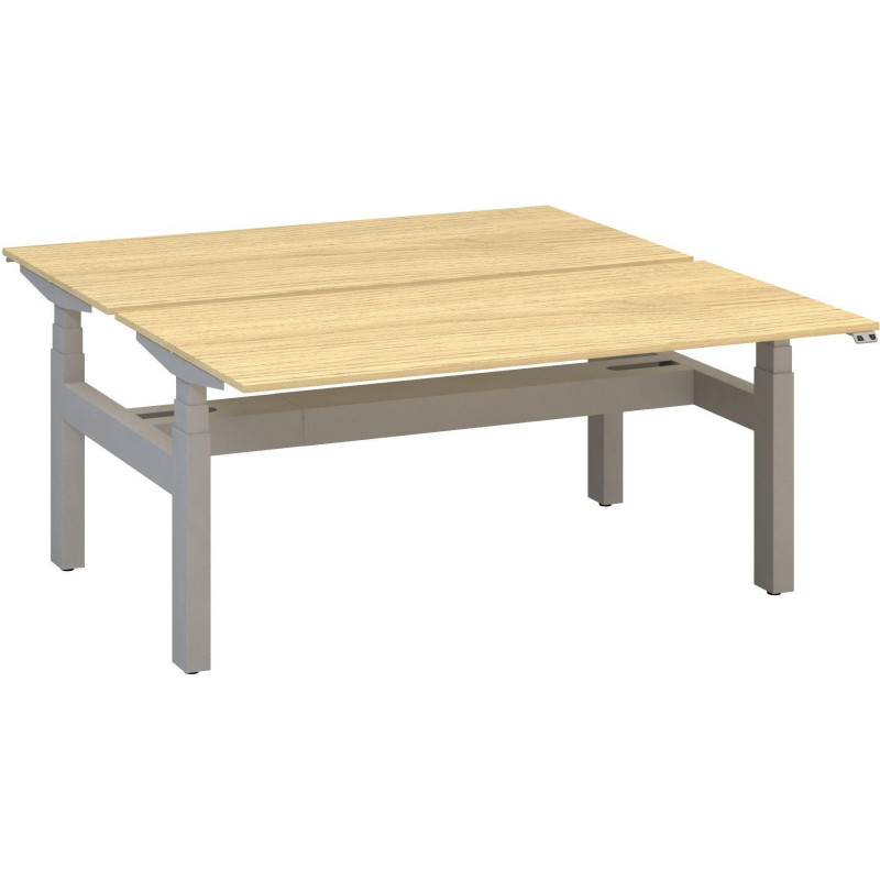 Kancelářský psací stůl ALFA UP výškově stavitelný, duotable, 1600 mm, dub vicenza / šedá