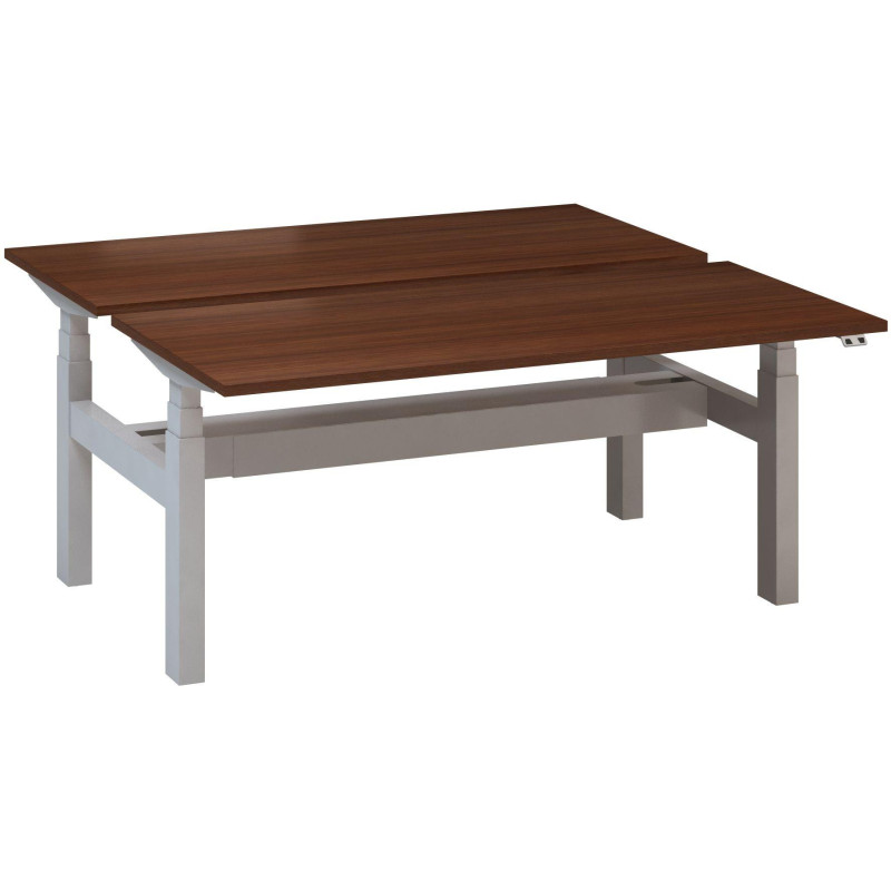 Kancelářský psací stůl ALFA UP výškově stavitelný, duotable, 1600 mm, ořech / šedá