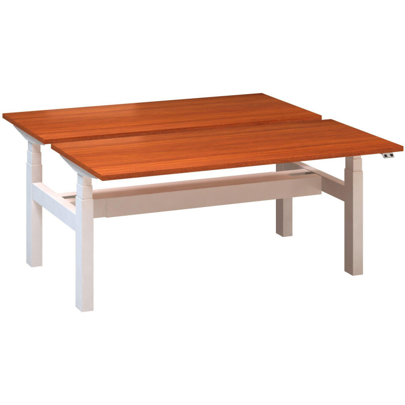 Kancelářský psací stůl ALFA UP výškově stavitelný, duotable, 1600 mm, třešeň / bílá