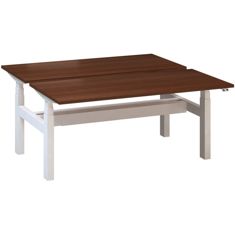 Kancelářský psací stůl ALFA UP výškově stavitelný, duotable, 1600 mm, ořech / bílá