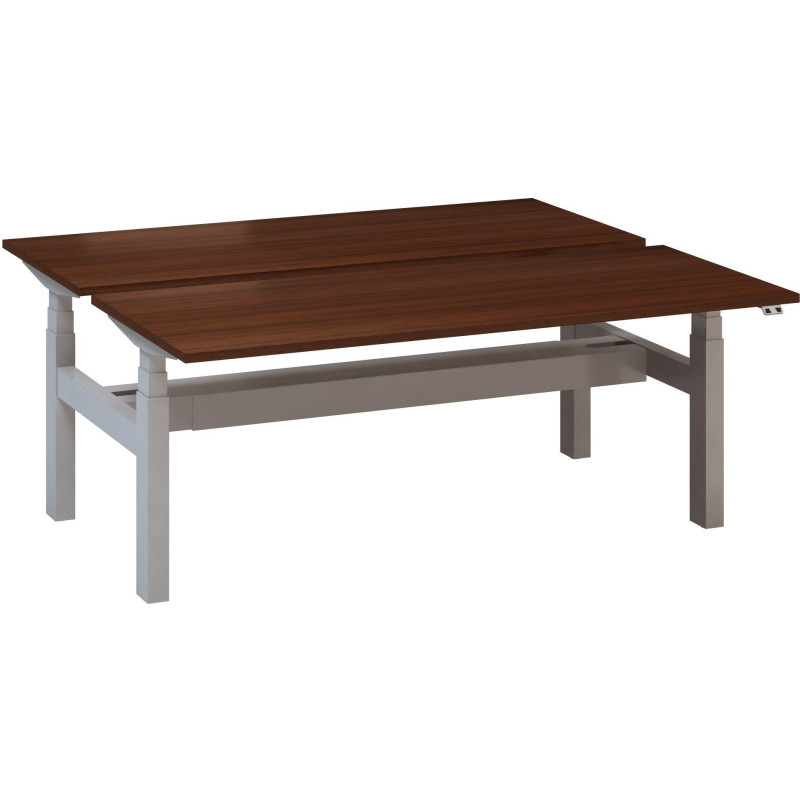 Kancelářský psací stůl ALFA UP výškově stavitelný, duotable, 1800 mm, ořech / šedá