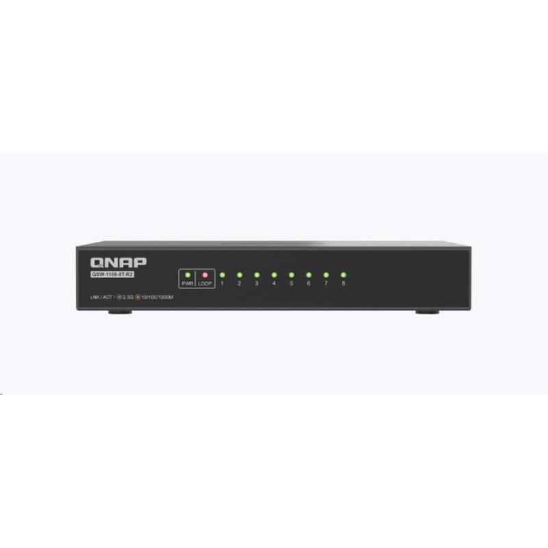 Cenově dostupný a kompaktní QSW-1108-8T-R2 je ideálním základním 8portovým 2,5GbE switchem. Tento neřízený switch, který je součástí řady QSW 1000, nabízí vysokou rychlost a stabilní výkon za příznivou cenu. Je optimalizován pro Wi-Fi 6/6E a je ideální pro domácí a kancelářské prostředí, kde je snaha vylepšit pracovní postupy, streamování multimédií a přenosy souborů. Model QSW-1108-8T-R2 je navržen a vyroben na Tchaj-wanu a poskytuje spolehlivou a bezpečnou kvalitu připojení k síti.