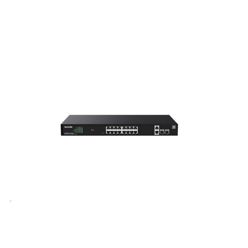 Tenda TEG2220P-16-250W je 18ti portový Gigabitový PoE L2 Websmart + Cloud switch. 16x 10/100/1000 Mb/s PoE 802.3af/at (celkem 230W) + 2x SFP 1000Mb/s. Podporuje webový + cloud management, QVLAN, IGMP, DHCP snooping, DHCP client, IGMP fast leave, Storm control, Anti-ring, Speed limit, Port mirroring + aggregation. Rackmount.