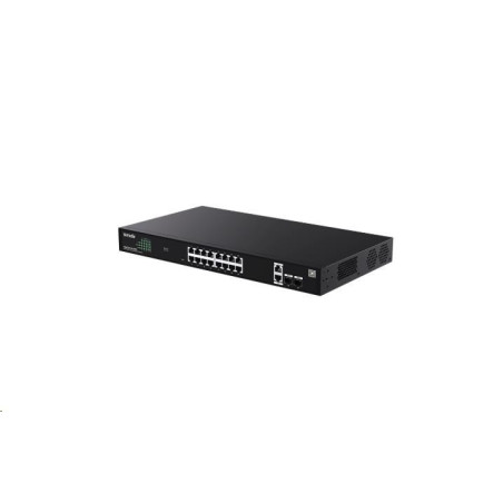 Porty: 16x 10/100/1000 Base-T (PoE + data), 2x 10/100/1000 Base-T (data), 2x 1000 Base-X SFP