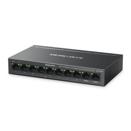 10 portů: 8× 10/100 Mbps PoE+ a 2× Gigabit non-PoE