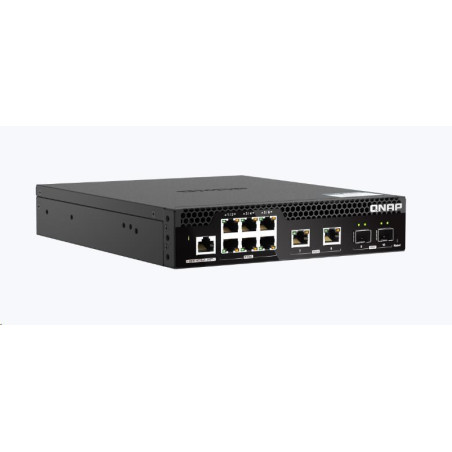 Zařízení QSW-M2106R-2S2T je webově řízený přepínač (switch) úrovně 2 se dvěma porty 10GbE SFP+, dvěma porty 10GbE RJ45 a šesti porty 2,5GbE RJ45. Zařízení QSW-M2106R-2S2T podporuje přepínání a správu sítě úrovně 2 (L2) prostřednictvím uživatelsky vstřícného webového rozhraní, nabízí flexibilní nasazení v hybridních vysokorychlostních síťových prostředích a poskytuje řešení pro správu sítě na základní úrovni, které zvládnou používat i ti, kdo nepatří mezi profesionály v oboru IT. Díky konstrukci s poloviční šířkou mohou být dva QSW-M2106R-2S2T instalovány do 1U rackového prostoru.