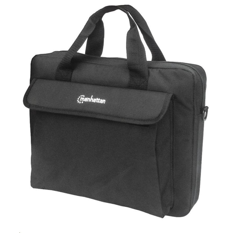 The MANHATTAN London Notebook Computer Briefcase is a practical solution with streamlined, traditional styling that easily travels and fits almost anywhere – under airline seats, into overhead bins and into larger luggage pieces. A single, wide deep front pocket keeps vital items, papers and accessories safe but within quick reach. Its secured flap with closure protects stowed contents. Dual strap handles with reinforced stitching and an adjustable, removable shoulder strap give mobile professionals multi-purpose carrying options.