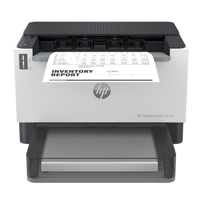 Obsah balení: 2R7F4A Tiskárna HP LaserJet Tank 2504dw; Černý originální zobrazovací válec HP LaserJet Tank (v balení zaváděcí s výtěžností černého toneru cca 5 000 stran); Napájecí kabel; Instalační příručka; Referenční příručka; Letáky s regulačními informacemi / informační letáky