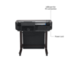 | Obsah balení | Tiskárna HP DesignJet T650 36”, podstavec pro tiskárnu, automatický podavač listů, kryt role, tisková hlava, zaváděcí inkoustové kazety, vřeteno, stručná referenční příručka, instalační leták, napájecí kabel |