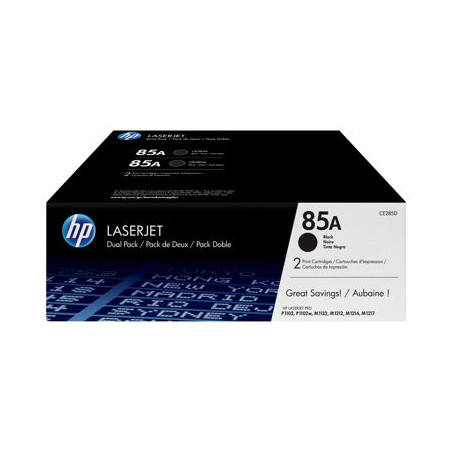 Dvojbalení tonerových kazet HP 85A LaserJet obsahuje dvě originální černé tonerové kazety HP 85A LaserJet pro běžný podnikový tisk za výhodnou cenu. Tiskněte snadno zprávy, dopisy a faktury v profesionální kvalitě.