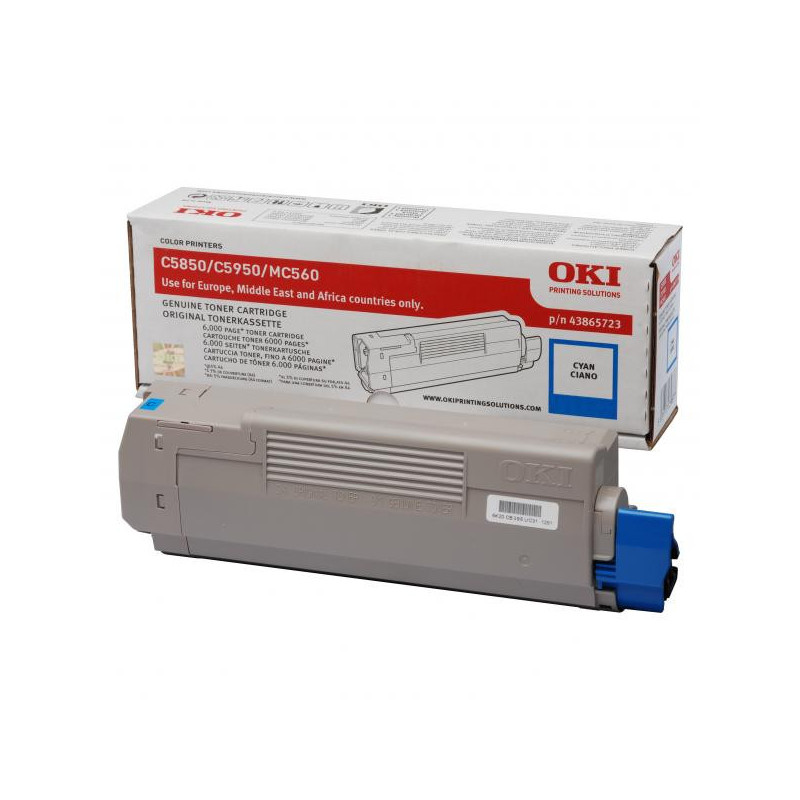 OKI originální toner 43865723, cyan, 6000str., OKI C5850, 5950, MC560, MC560n, MC560dn, O