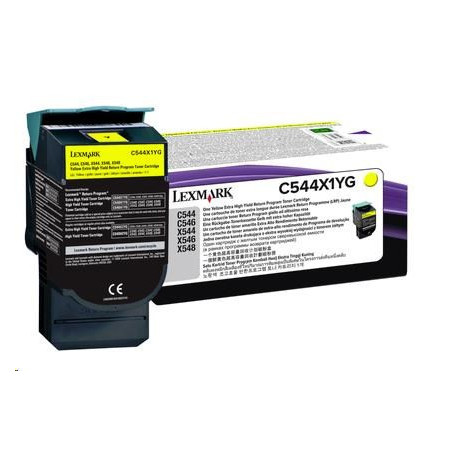 Lexmark originální toner C544X1YG, yellow, 4000str., extra high capacity, return, Lexmark X544x, O