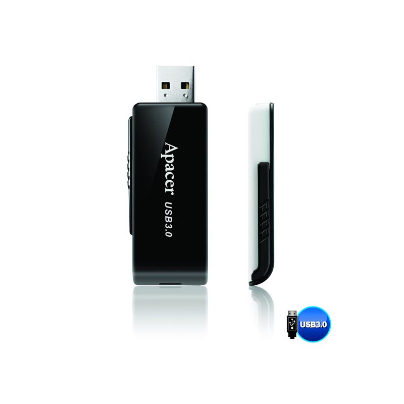 Apacer USB flash disk, 3.0, 32GB, AH350, černý, AP32GAH350B-1, s výsuvným konektorem