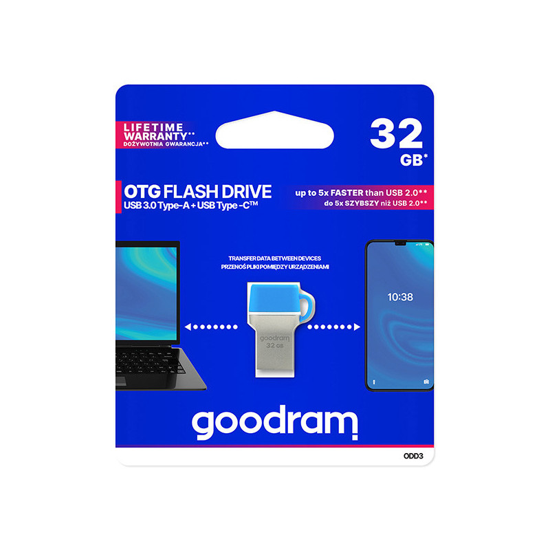 Kompaktní USB Flash disk s podporou USB On-the-Go, vám umožní rychlý přenos dat mezi počítačem a vašim smartphonem bez jakéhokoli kabelu.