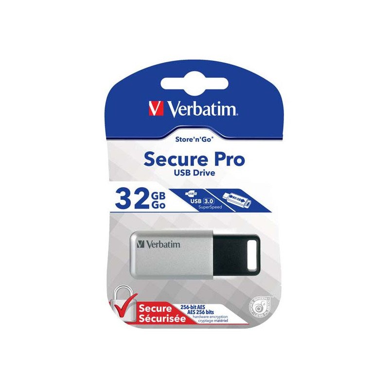 Jednotka Store n Go Secure Pro společnosti Verbatim disponuje 256bitovým hardwarovým šifrováním Premium AES (Advanced Encryption Standard) a integrovanou ochranou pomocí hesla, takže lze ukládat a přenášet důvěrná data a zároveň se chránit před ztrátou nebo neoprávněným čtením.
