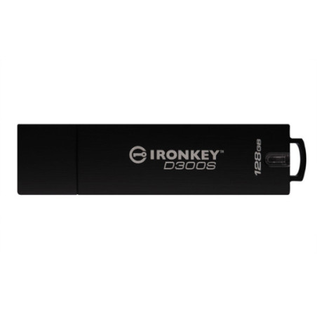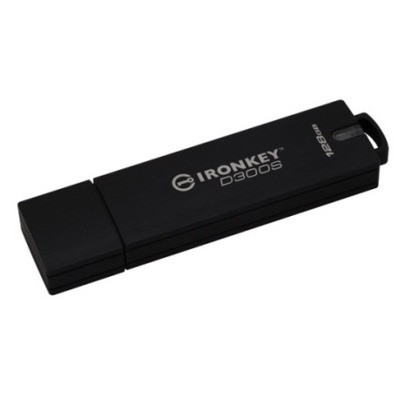 Kingston USB flash disk, USB 3.0 (3.2 Gen 1), 128GB, IronKey D300S, černý, IKD300S/128GB, USB A, šifrování XTS-AES 256-bit,