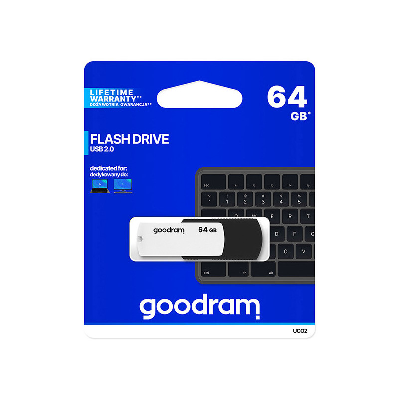 Goodram USB flash disk, USB 2.0, 64GB, UC02, černý, UCO2-0640KWR11, USB A, s otočnou krytkou