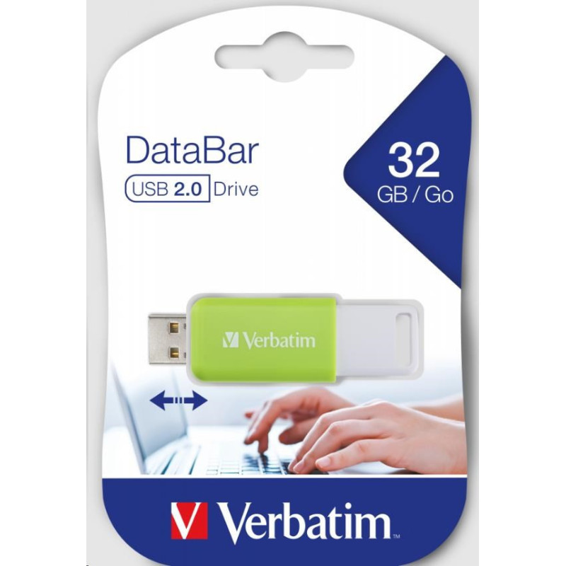 Verbatim USB flash disk, 2.0, 32GB, DataBar, zelený, 49454, pro archivaci dat