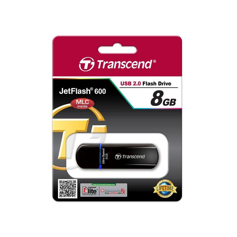 TRANSCEND Flash Disk 8GB JetFlash®600, USB 2.0 (R:32/W:12 MB/s) černá/modrá