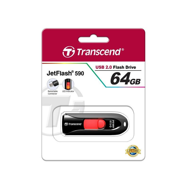 Transcend 64GB JetFlash 590, USB 2.0 flash disk, černo/červený