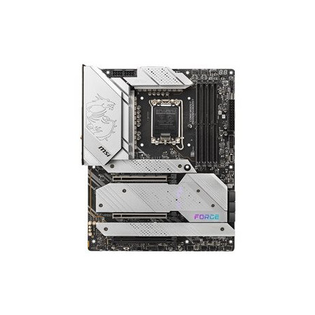 Výkonná základní deska značky MSI určená pro procesory Intel, socket LGA 1700, chipset Z690, pro paměti typu DDR5 DIMM až 6666 MHz, maximálně 128 GB RAM, 6x SATA, 4x RAM, 3x PCIe, podpora PCIe 5.0, interní konektory: ATX 8pin, ATX 24pin, ARGB LED 5V, TPM, M.2 PCI-E 3.0, M.2 PCI-E 4.0, RGB LED 12V, Water, software MSI Dragon Center, formát ATX.