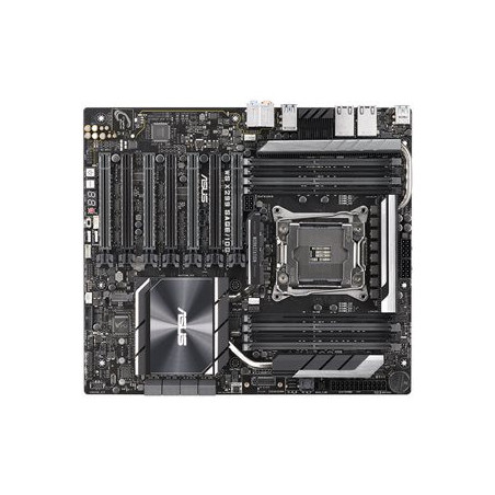 Intel LGA 2066 CEB motherboard with quad-GPU support, DDR4 4200MHz, Dual Intel 10G LANs, M.2, U.2, USB 3.1 Gen 2 connectors, and ASUS Control Center