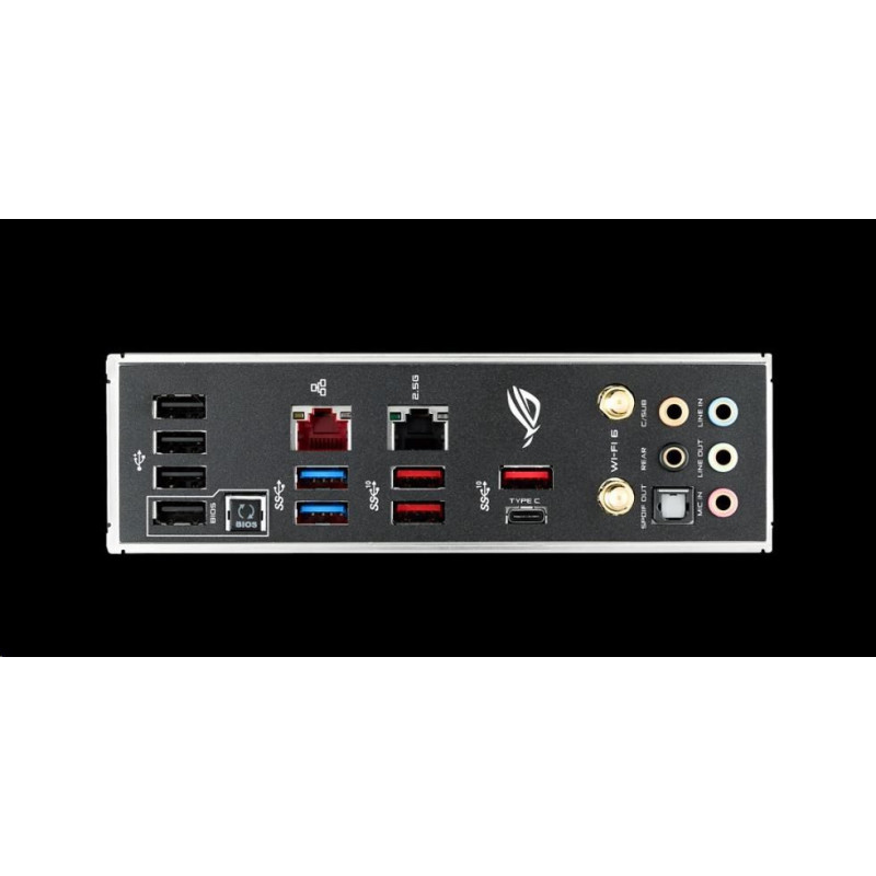 | Back I/O Ports | 1 x LAN (RJ45) port(s) 4 x USB 2.0 (one port can be switched to USB BIOS Flashback) 1 x Optical S/PDIF out 5 x Audio jack(s) 1 x Anti-surge 2.5G LAN (RJ45) port 1 x Wi-Fi antenna port(s) 1 x USB BIOS Flashback Button(s) 2 x USB 3.2 Gen 1 (up to 5Gbps) ports Type-A 4 x USB 3.2 Gen 2 (up to 10Gbps) ports (Type-A + USB Type-CTM) |
