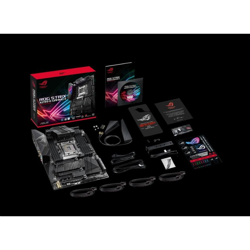 | Accessories | User's manual 1 x Vertical M.2 bracket set 4 x SATA 6Gb/s cable(s) 1 x M.2 Screw Package 1 x Supporting DVD 1 x ROG Strix stickers 1 x Q-Connector 1 x M.2 screw kit (long screw and mount) 1 x Cable ties pack(s) 1 x Wi-Fi Antenna(s) 1 x ROG Door Hanger(s) 1 x Extension Cable for RGB strips (80 cm) 1 x Extension cable for Addressable LED 1 x Thermistor cable(s) 1 x ROG Thank you card |