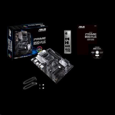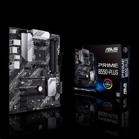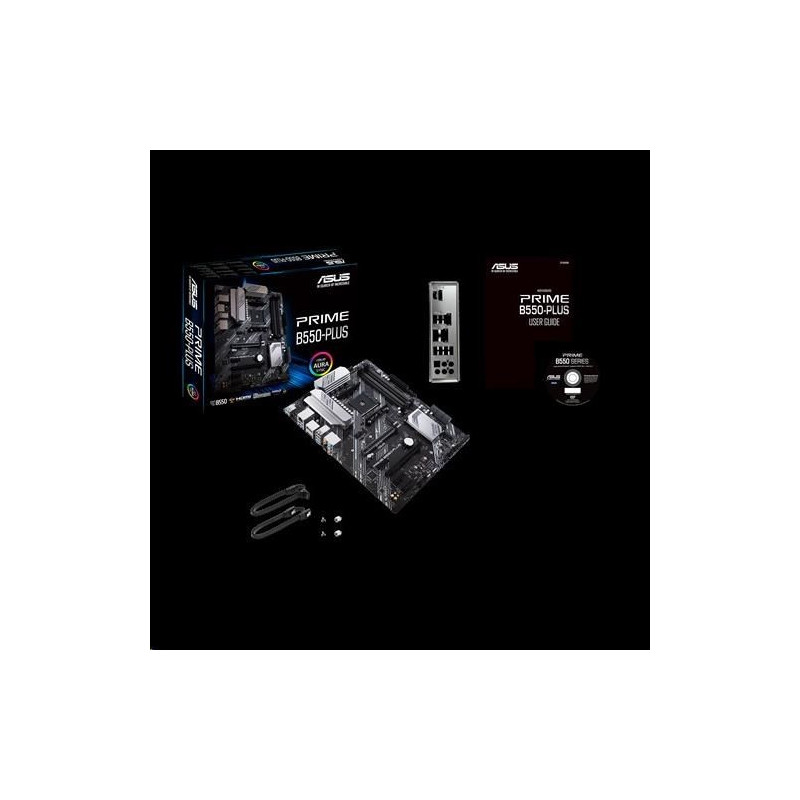 AMD B550 (Ryzen AM4) ATX motherboard with dual M.2, PCIe 4.0, 1 Gb Ethernet, DisplayPort/HDMI, SATA 6 Gbps, USB 3.2 Gen 2 Type-A and Type-C, and Aura Sync RGB headers support