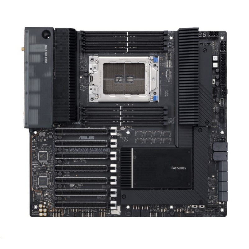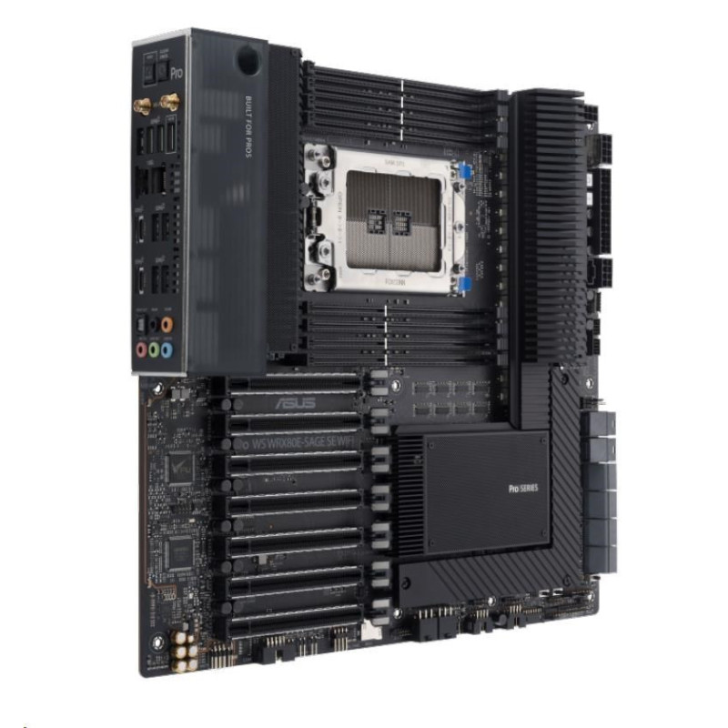 AMD WRX80 Ryzen™ Threadripper™ PRO extended-ATX workstation motherboard with Intel dual 10 G LAN, USB 3.2 Gen 2x2 Type-C port, 7 x PCIe 4.0 x16 slots, 3 x M.2 PCIe 4.0, ASMB9-iKVM, 2 x U.2 and 16 power stages