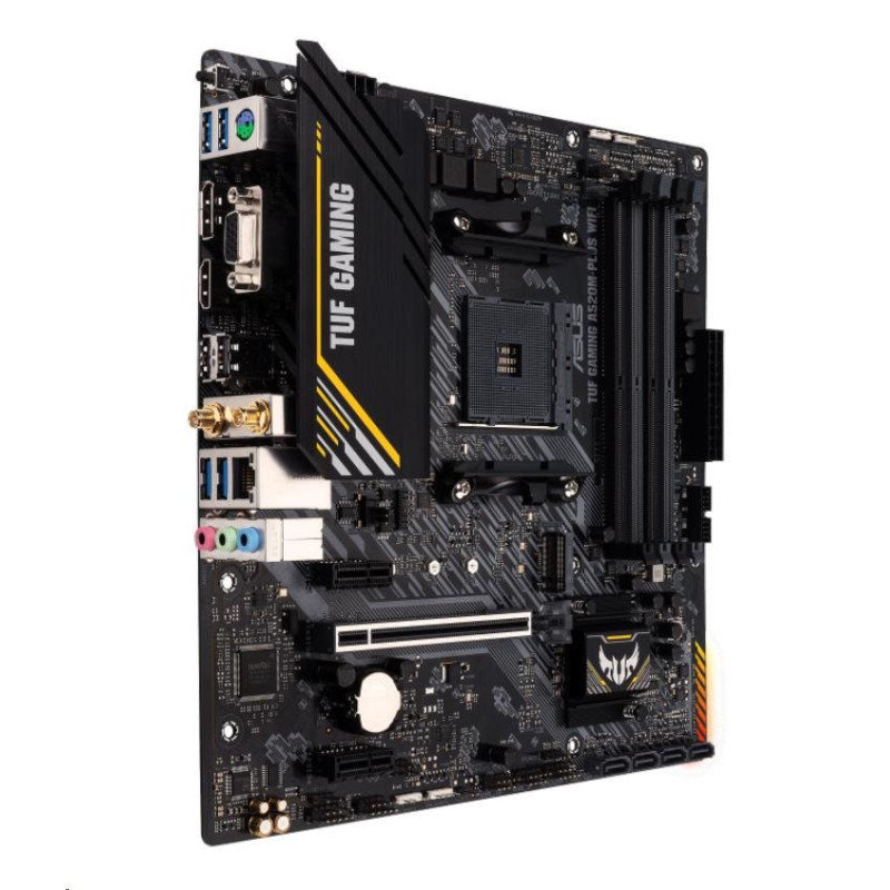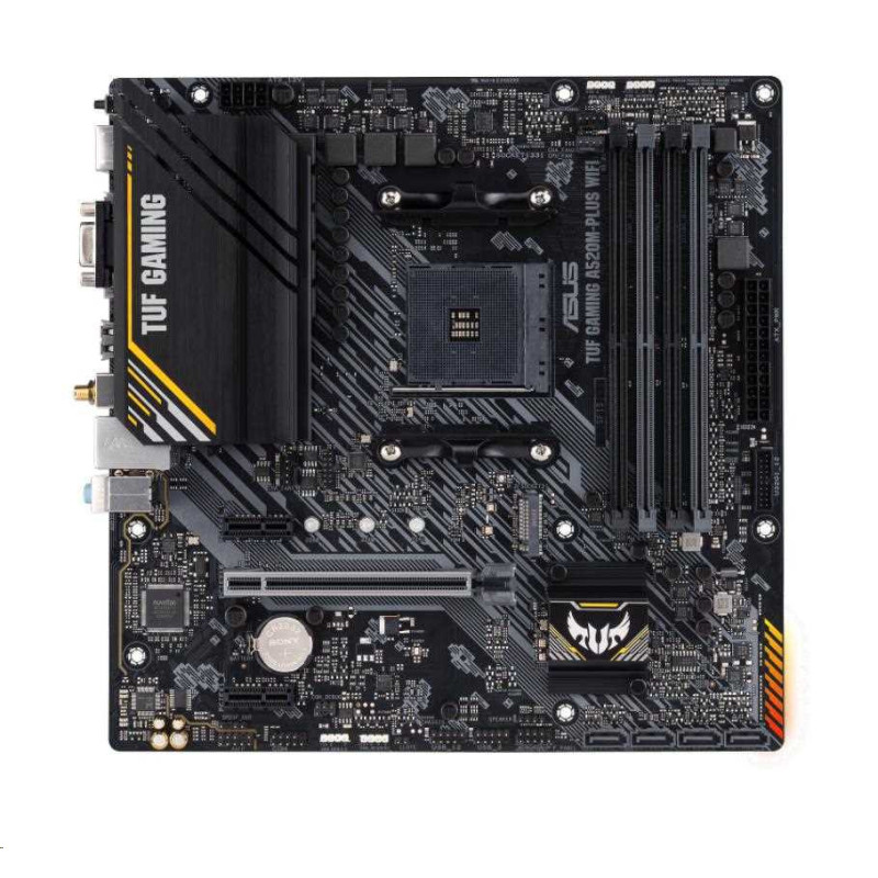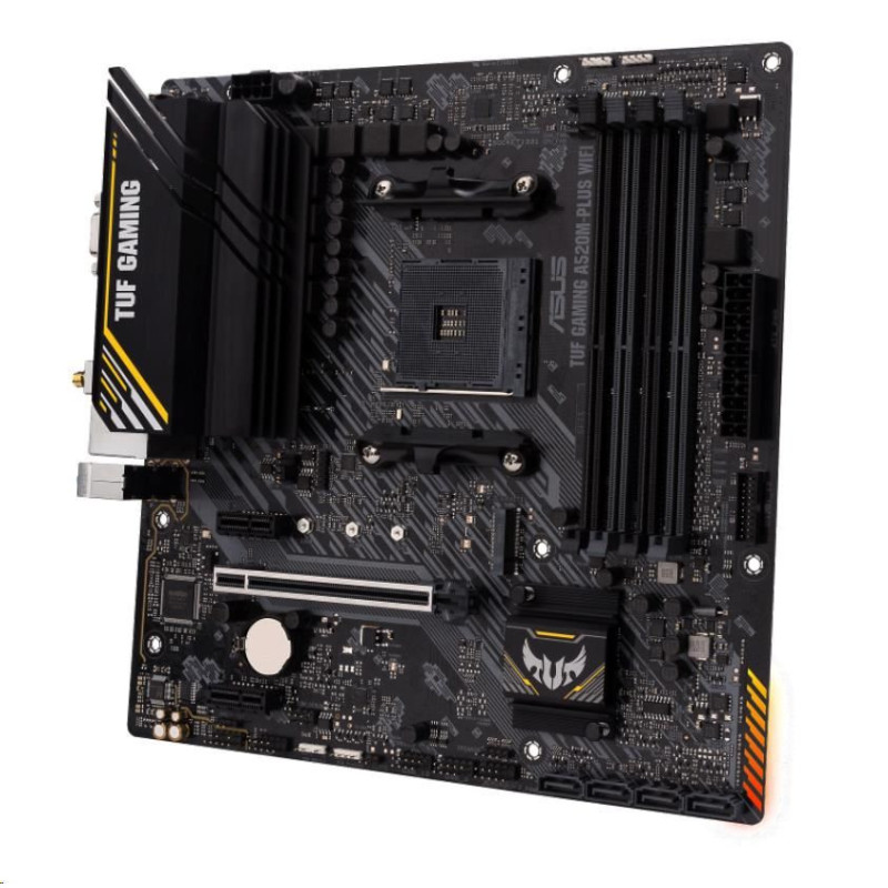 AMD A520 (Ryzen AM4) micro ATX gaming motherboard with M.2 support, 802.11ac Wi-Fi, DisplayPort, HDMI, D-Sub, USB 3.2 Gen 1 ports, SATA 6 Gbps, and AURA Addressable Gen 2 headers.