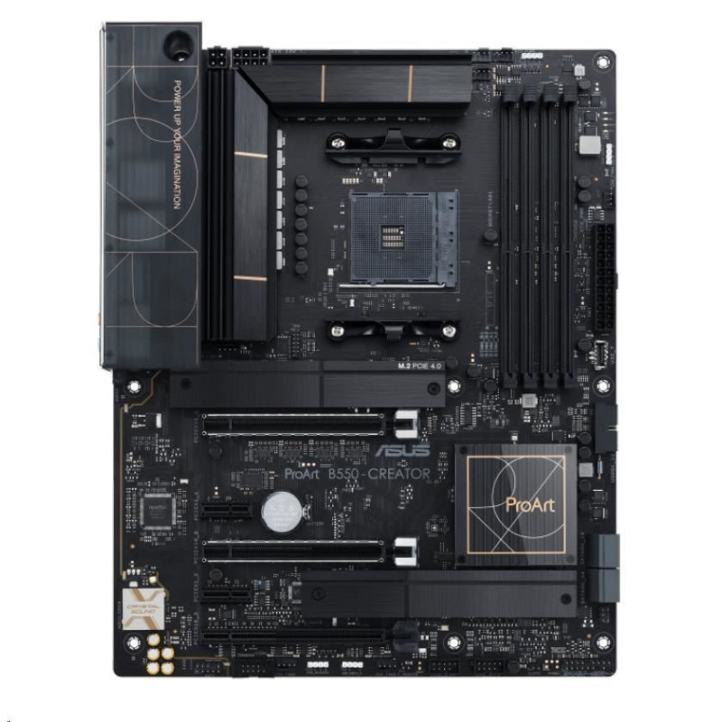 AMD B550 Ryzen AM4 ATX motherboard for content creators features PCIe 4.0, dual Thunderbolt™ 4 Type-C ports, dual Intel 2.5Gb Ethernet, dual M.2 with heatsinks, USB 3.2 Gen 2 and advanced security management