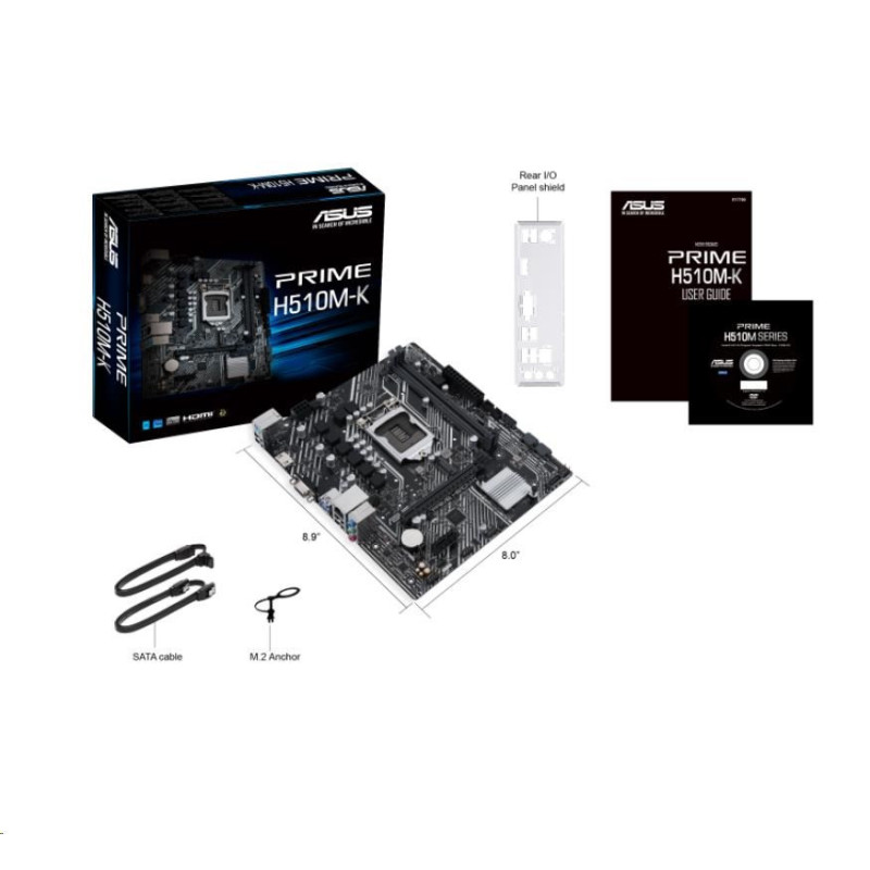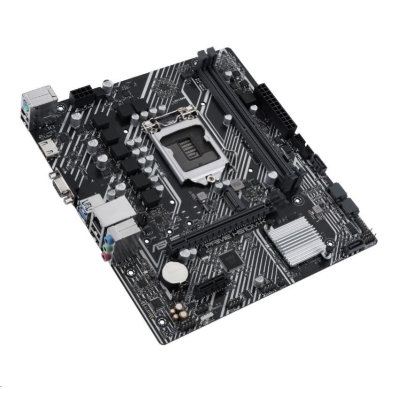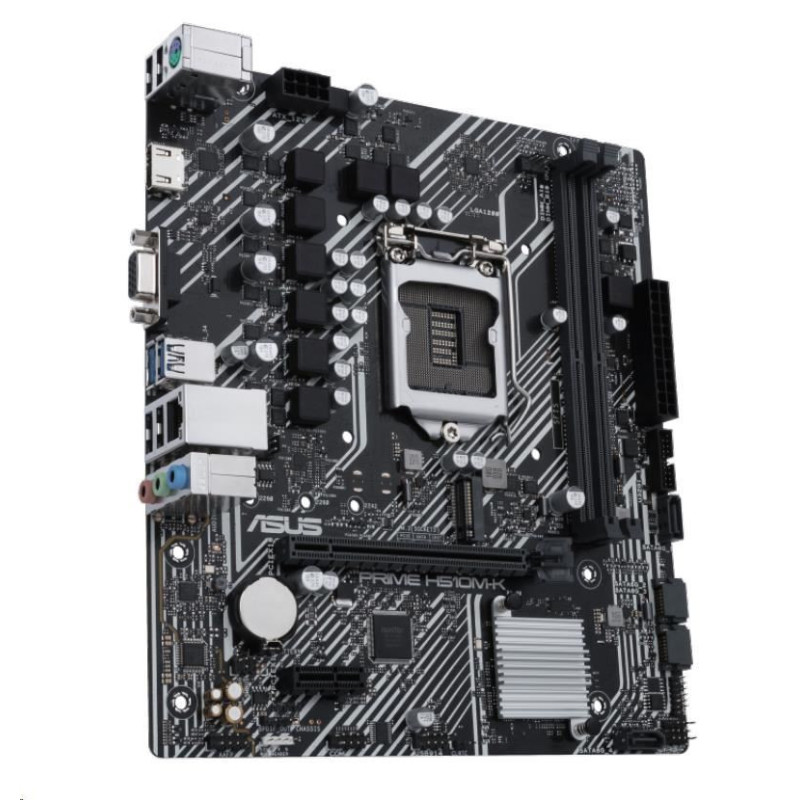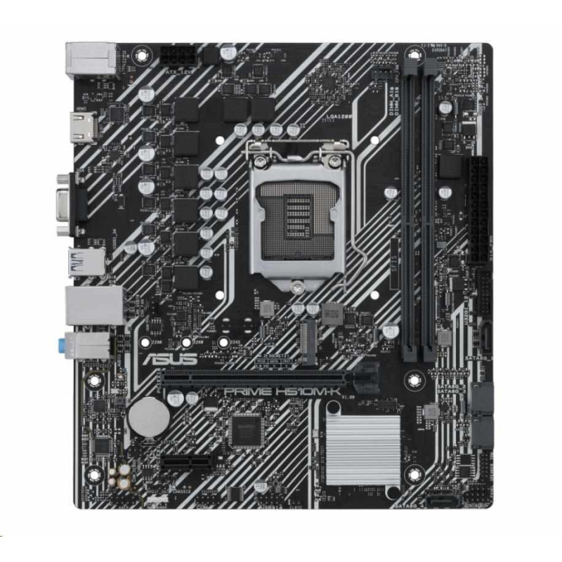Intel H510 (LGA 1200) micro ATX motherboard with PCIe 4.0, 32Gbps M.2 slot, Intel 1 Gb Ethernet, HDMI, D-Sub, USB 3.2 Gen 1 Type-A, SATA 6 Gbps, COM header, and RGB header
