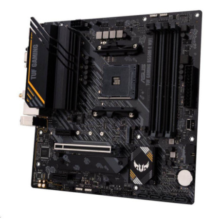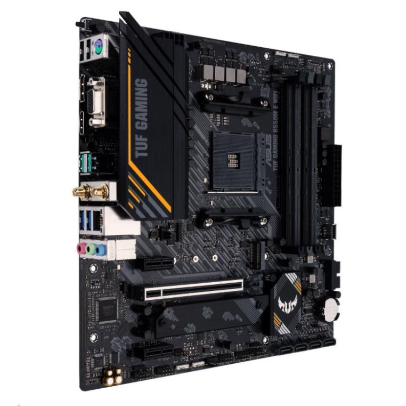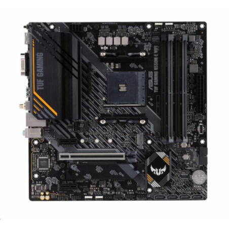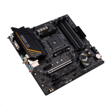 AMD B550 (Ryzen AM4) micro ATX gaming motherboard with PCIe 4.0, dual M.2, Intel Wi-Fi 6, DisplayPort, HDMI, D-Sub, SATA 6 Gbps, USB 3.2 Gen 2 Type-A, front USB 3.2 Gen 1 Type-C, BIOS FlashBack™, and Aura Sync RGB lighting support