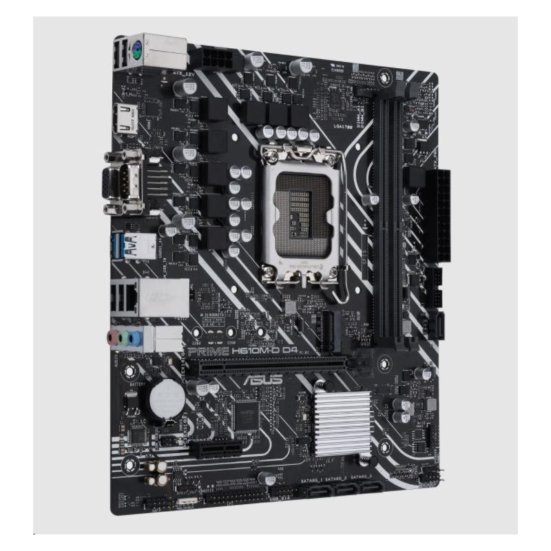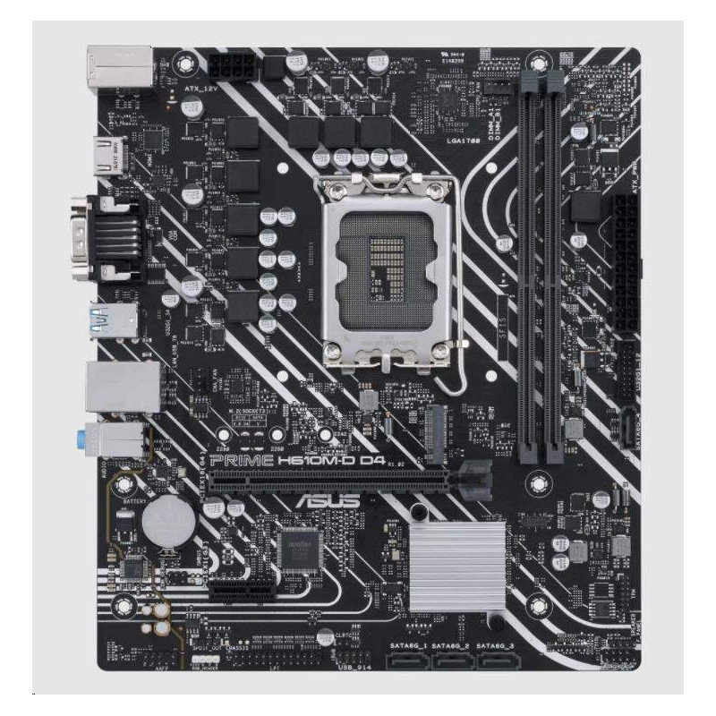 Intel H610 (LGA 1700) micro-ATX motherboard with DDR4, PCIe 4.0, M.2 slot, Realtek 1 Gb Ethernet, HDMI, D-Sub, USB 3.2 Gen 1 ports, SATA 6 Gbps, COM port, LPT header, RGB header