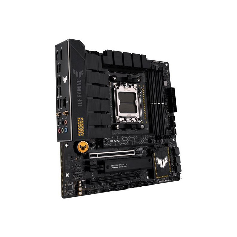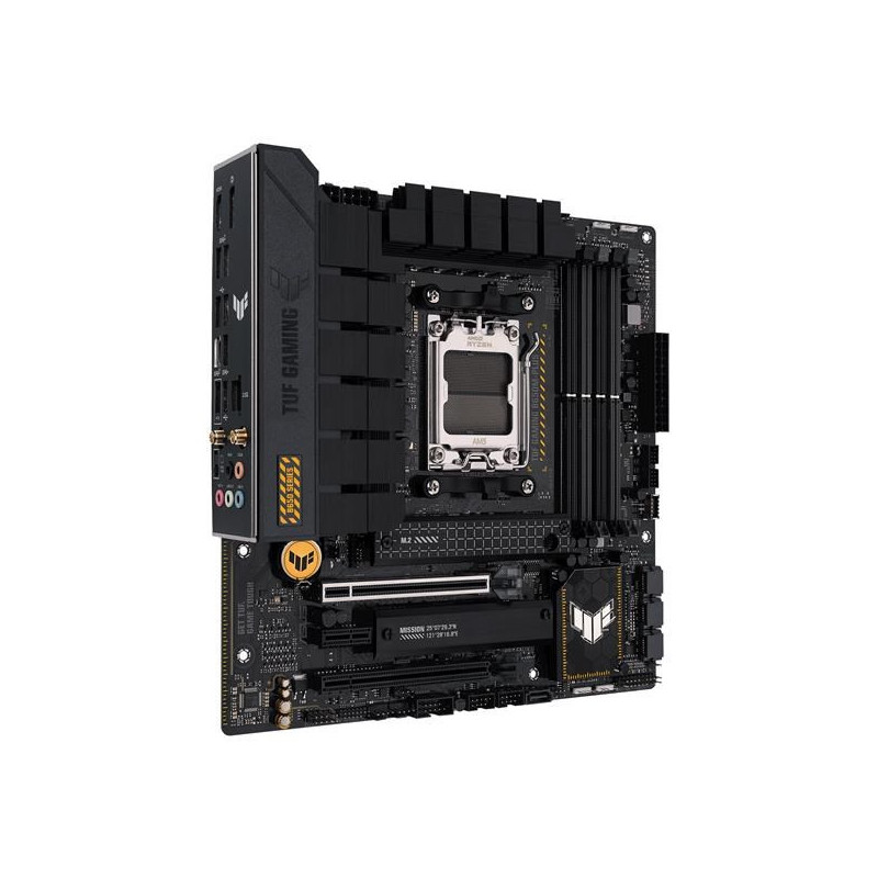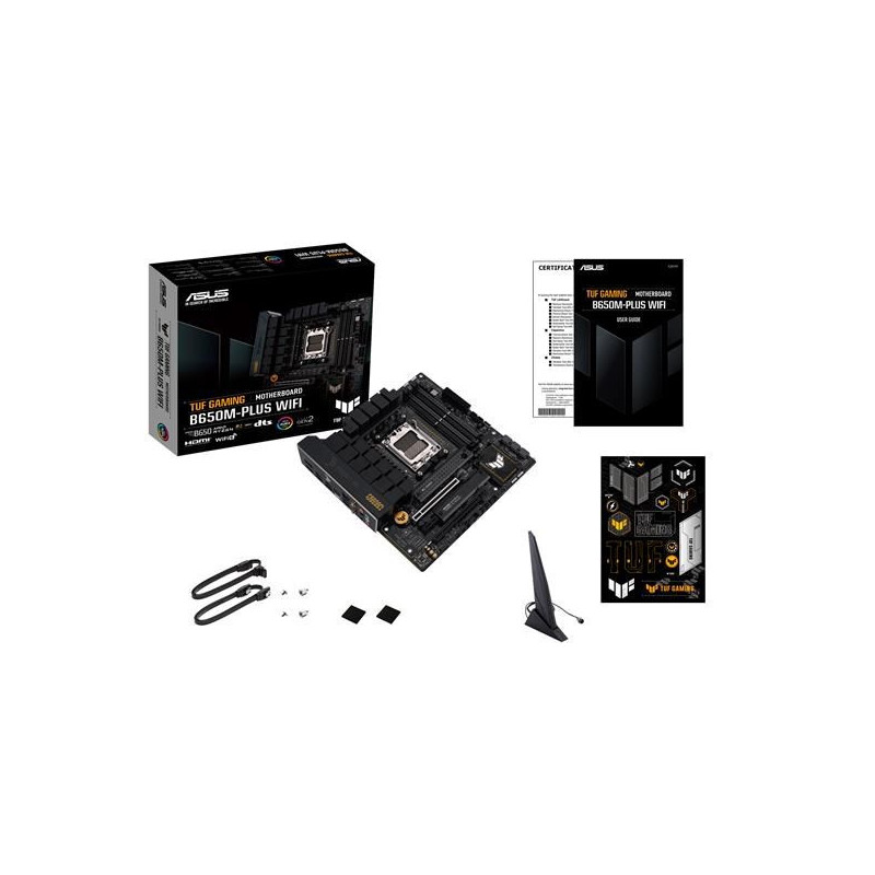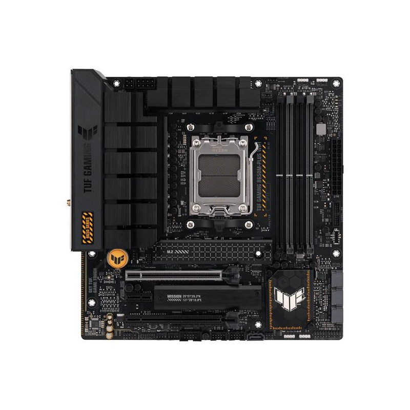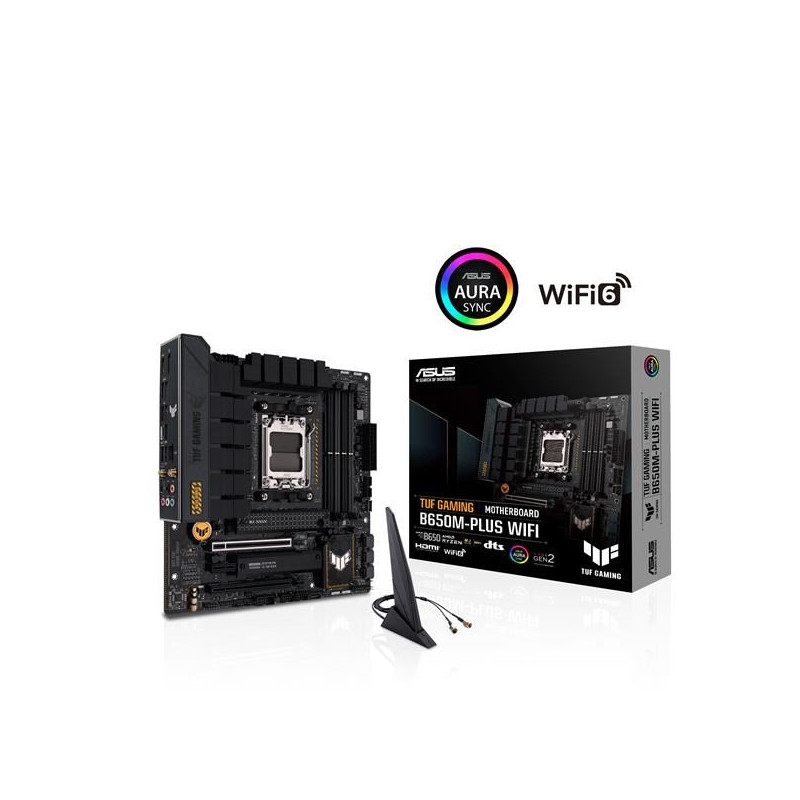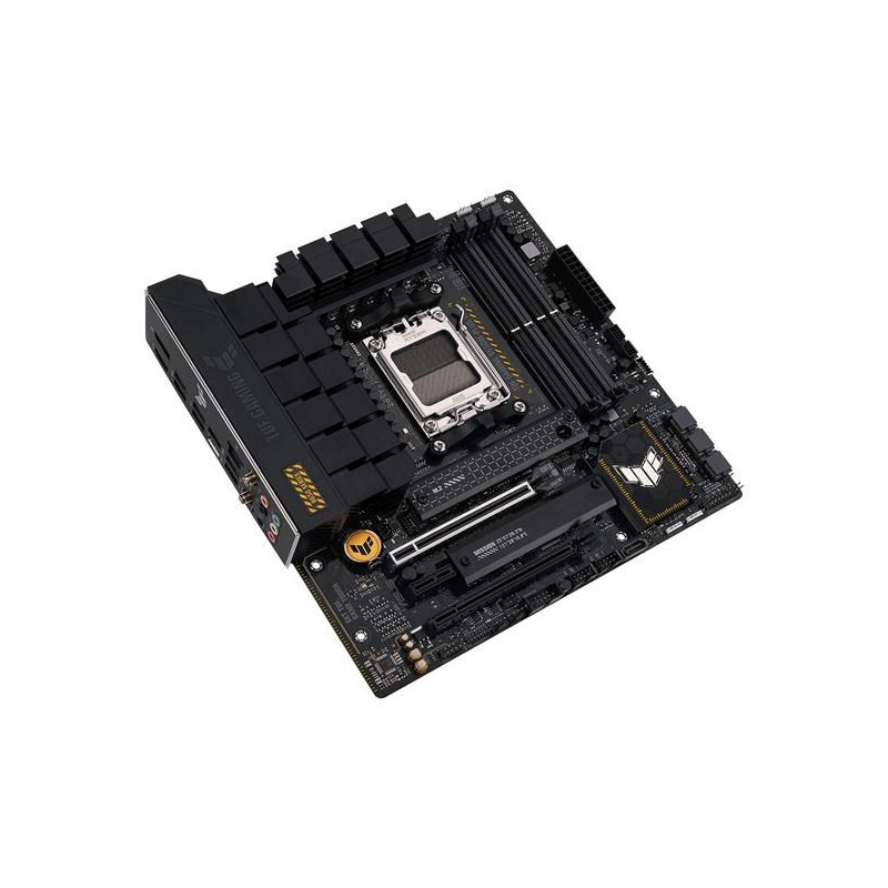 ASUS TUF GAMING B650M-PLUS WIFI takes all the essential elements of the latest AMD Ryzen 7000-series processors and combines them with game-ready features and proven durability. Engineered with military-grade components, an upgraded power solution and a comprehensive cooling system, this motherboard goes beyond expectations with rock-solid and stable performance for marathon gaming. TUF GAMING motherboards also undergo rigorous endurance testing to ensure that they can handle conditions where others may fail. Aesthetically, this model incorporates rugged off-black and geometric design elements to reflect the dependability and stability that defines the TUF GAMING series.