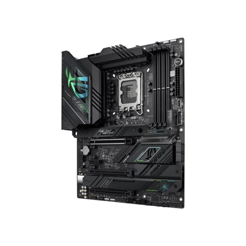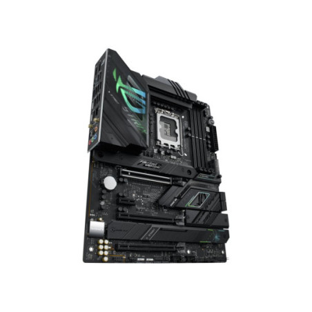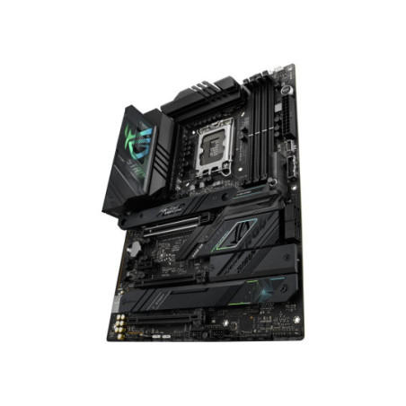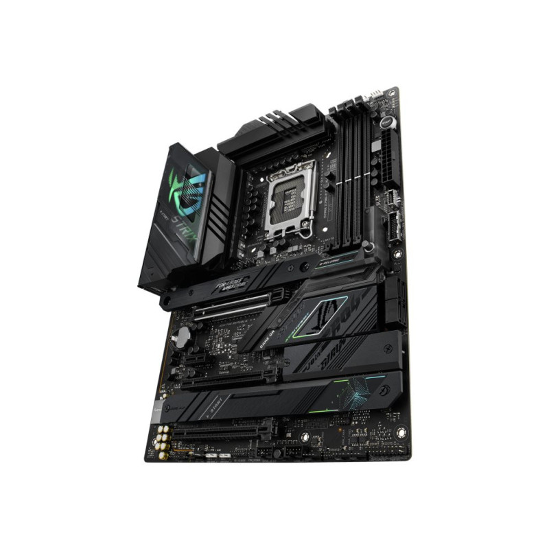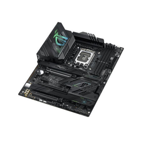 Intel Z790 LGA 1700 ATX motherboard with 16 + 1 power stages, DDR5 memory support, four M.2 slots, PCIe 5.0 x16 SafeSlot with Q-Release, WiFi 6E, USB 3.2 Gen 2x2 Type-C rear I/O port and additional front-panel connector with PD 3.0 up to 30W, AI Overclocking, AI Cooling II, and Aura Sync RGB lighting