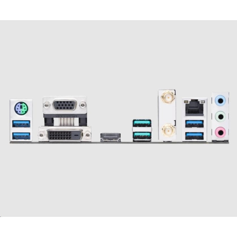 Zadní konektory: 3.5mm jack (3x) 7.1CH, D-Sub (1x), DVI-D (1x), HDMI (1x), LAN 1Gb/s (1x), PS/2 (1x), USB 3.2 Gen 1 Type-A (4x), USB 3.2 Gen 2 Type-A (2x)