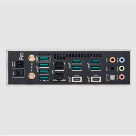 Zadní konektory: 3.5mm jack (5x) 7.1CH, BIOS Flashback, Clear CMOS, LAN 10Gb/s (1x), Optical S/PDIF (1x), USB 3.2 Gen 1 Type-A (8x), USB 3.2 Gen 1 Type-C (1x), USB 3.2 Gen 2x2 Type-C (1x)